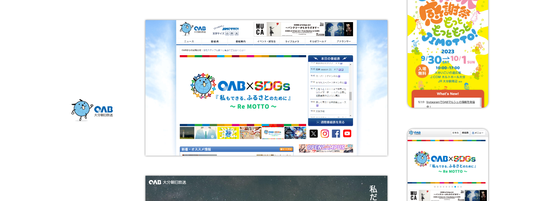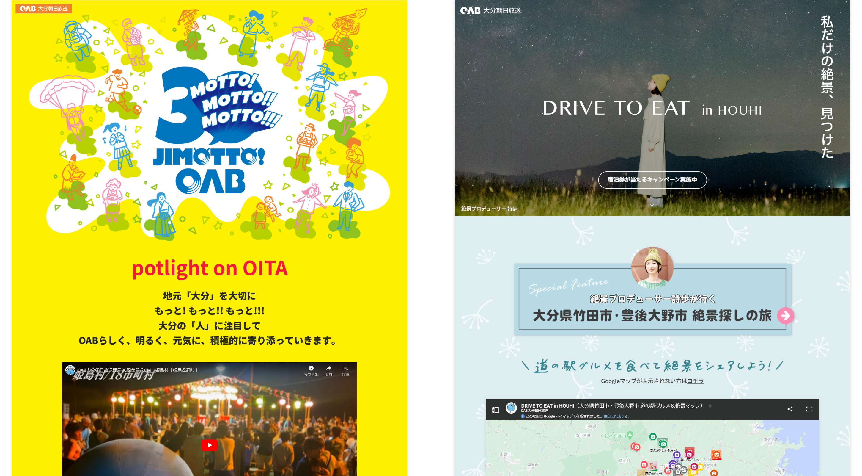 テレビ朝日系列の大分のローカル局大分朝日放送(通称:OAB)様の公式サイトと各種番組サイトおよび高校野球サイトのリニューアルを担当しました。各番組スタッフが番組サイトを更新しやすくするためにCMSを導入。ディレクターとデザイナーが常駐し、日々のサイト更新業務に従事しております。