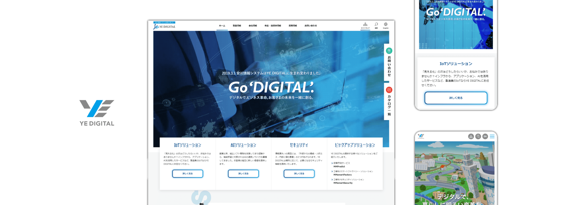 2019年3月の社名変更に伴うリブランディングを担当。ソフトウェアとハードウェアを融合したデジタルトランスフォーメーションで、社会に貢献したいというコンセプトのもと、コーポレートサイト、パンフレット、新社屋紹介映像制作を担当いたしました。新社屋紹介映像は、社長様インタビュー・屋内外ドローン撮影・3DCGアニメーションによる事業紹介等で構成。